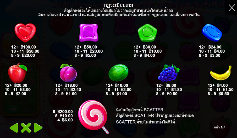 สัญลักษณ์การจ่ายของเกม Sweet bonanza